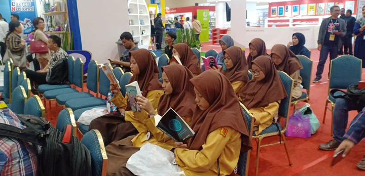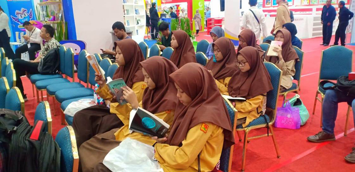 Kamis (5/9) lalu, sebanyak 25 santri putri dan 3 guru pembimbing bisa menghadiri bedah buku di JCC, sedangkan 61 santri putra juga ikut serta hadir di JCC pada Jum’at (6/9) lalu degan 5 guru pembimbing, usai ikut hadir dalam bedah buku santri diberi kesempatan untuk hunting, mengkoleksi dan berbelanja buku-buku sesuai bidang yang sedang digeluti, dari berbagai penerbit mulia dari dalam bahkan luar negeri.