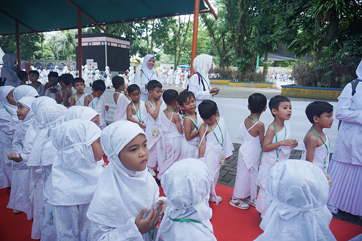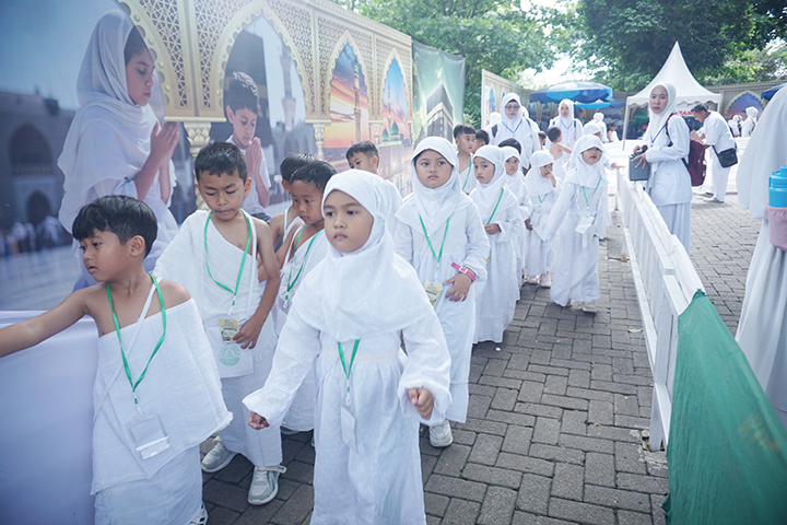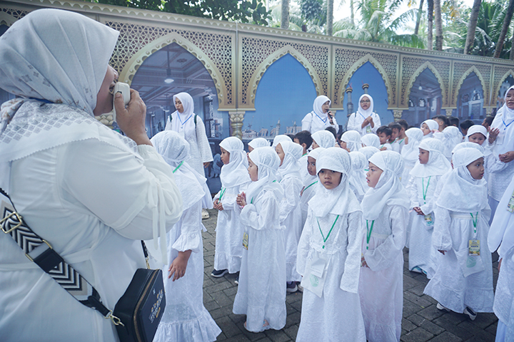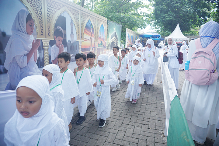 Salah satu peserta, Dayyan, mengaku senang bisa mengikuti kegiatan ini. “Seru banget, aku bisa pakai kain ihram dan keliling Ka’bah! Terus habis itu lihat hewan-hewan di museum,” ungkapnya dengan wajah ceria.