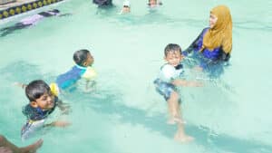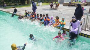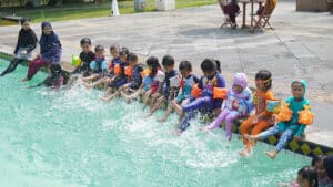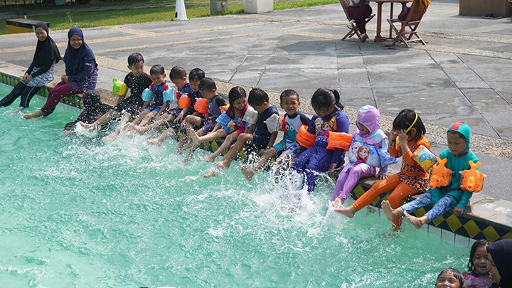 Ekskul Renang merupakan salah satu ekskul wajib di RA Darul Muttaqien yang diadakan secara rutin setiap awal bulan.
