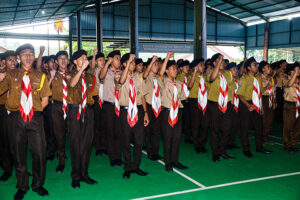 “Karena seorang pramuka itu adalah seorang ksatria, bersahaja, satunya perkataan, pikiran dan perbuatan jika disatukan akan menjadi kekuatan yang dahsyat untuk kemajuan bangsa”, tambahnya. (fhd)