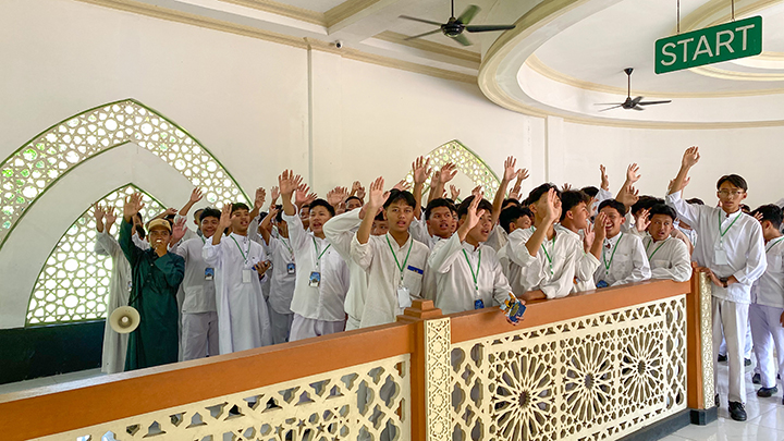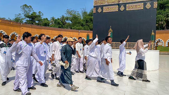 Pasca pengarahan, Antusiasme santri mulai memuncak saat melakukan simulasi ibadah haji yang dimulai dari niat berihram di Miqat. Dengan bimbingan intensif, santri mengikuti alur ibadah secara berurutan, meliputi: