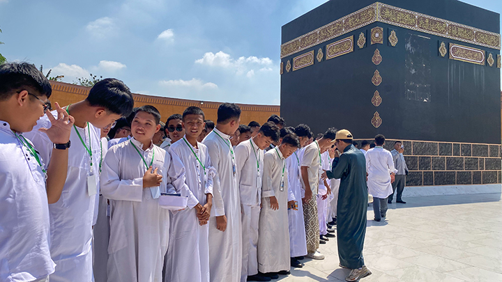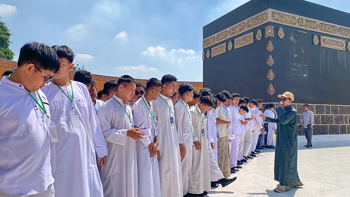 Sebagai penutup rangkaian manasik, para santri diajak mengunjungi Al-Mahmudah Cinema. Di sana, mereka menyaksikan tayangan dokumenter sejarah Ka’bah yang diputar dengan teknologi visual modern, sehingga memberikan gambaran nyata mengenai sejarah peradaban Islam di Tanah Suci.