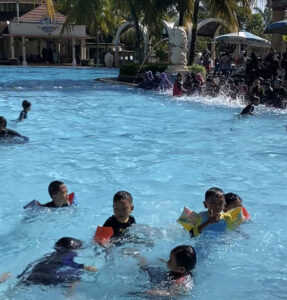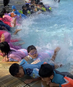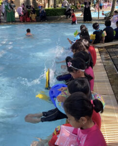 Salah satu santri RA, Hafidz (Kelas TK B), dengan wajah ceria mengatakan, “Aku senang banget renang bareng teman-teman! Airnya dingin tapi seru, terus ada ibu juga yang nontonin.” Ungkapan polos namun penuh kegembiraan ini menggambarkan antusiasme para santri dalam mengikuti kegiatan hari ini.