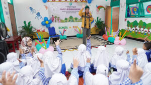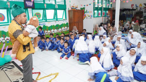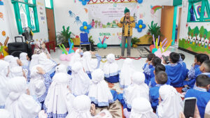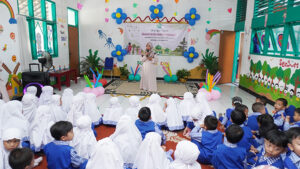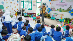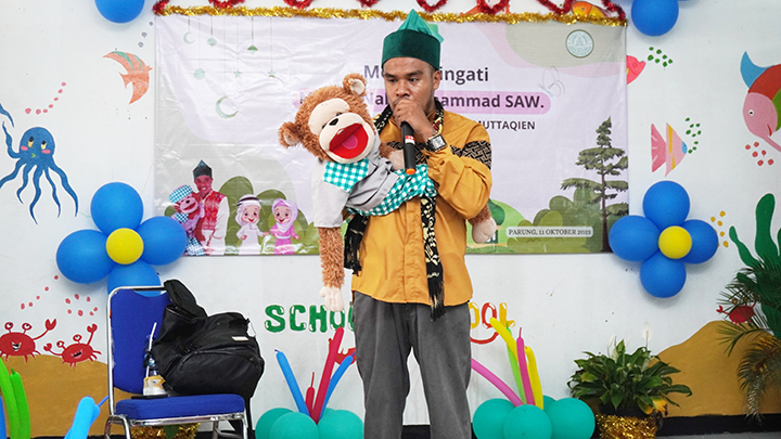 Rabu (11/10), RA Darul Muttaqien mengundang seorang pendongen bernama Kak Mansur dalam rangka memperingati Maulid Nabi Muhammad SAW yang jatuh pada tanggal 28 september lalu. Sebelum santri RA meneladani sifat-sifat Rasulullah saw, seluruh santri menampilkan tari kreatif islami dari masing-masing kelas.