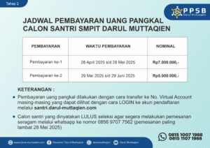 Pengumuman hasil tes calon santri baru dijadwalkan hari ini pada senin (28/4) sudah bisa dilihat oleh orangtua dan calon santri baru SDIT melalui website pesantren (www.darul-muttaqien.com) atau bisa juga dilihat pengumumannya dengan login ke akun pendaftaran masing-masing.
