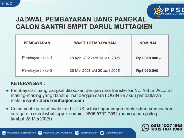 Berdasarkan Hasil Keputusan Rapat Pimpinan Pondok Pesantren Darul Muttaqien, dengan mempertimbangkan perkembangan situasi saat ini, berikut kami sampaikan perubahan jadwal kedatangan santri lama TMI ke pesantren Tahun Pendidikan 2020-2021 :
