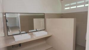 Desain kamar mandi yang elegan dan modern diharapkan dapat meningkatkan kesan yang baik bagi tamu. Kamar mandi ini akan dilengkapi dengan fasilitas yang memadai untuk memastikan kenyamanan dan kebersihan.