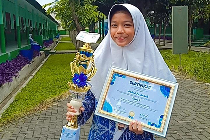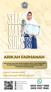 Alhamdulillah bersyukur kepada Allah swt. dengan keberkahan Al qur’an, do’a ustadz serta ustdzah, pun do’a orangtua ananda dan kesungguhan ananda; Santri Tahfizh, juara 1 MHQ tingkat MTs