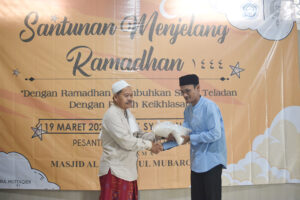 Santunan yang dibagikan kepada masyarakat dhuafa di wilayah Jabon ini  diadakan oleh Pesantren Darul Muttaqien dalam rangka untuk menyambut bulan suci Ramadhan 1444 hijriyah, serta membantu masyarakat yang memang perlu untuk dibantu sebagai bekal mereka di bulan ramadhan.