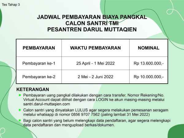 • Pesantren Darul Muttaqien: Satu dalam aqidah, toleransi dalam khilafiyah, berjama'ah dalam ibadah dan muamalah.