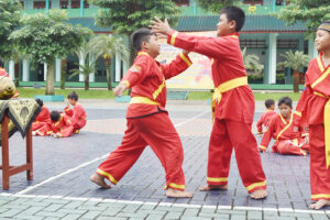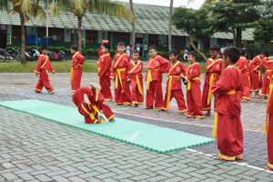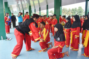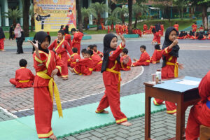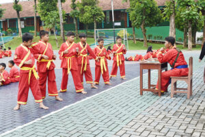 Sabtu (25/2), peserta ujian kenaikan tingkat salah satu ekskul bela diri di SDIT berkumpul di lapangan Damaskus untuk mengikuti ujian kelayakan naik tingkat, ekskul bela diri Tapak Suci di SDIT merupakan salah satu ekskul yang wajib diikuti oleh seluruh santri SDIT Darul Muttaqien.