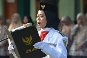 Menurutnya pekik merdeka yang kita teriakkan bukanlah kata yang tanpa makna, teriakan tanpa arti, Pembina upacara menerangkan bahwa merdeka terlahir dari tetesan darah para syuhada, para mujahid-mujahidah yang tak ada kata menyerah.